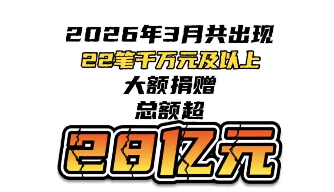 2026年3月大額捐贈一覽:千萬元及以上捐贈超28億元,高校捐贈引矚目
