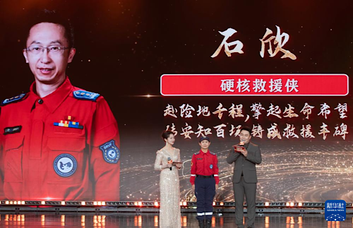 1月28日,由新華社主辦的“中國網(wǎng)事·感動2025”公益盛典暨年度頒獎典禮在北京舉行,活動揭曉“中國網(wǎng)事·感動2025”十大年度網(wǎng)絡人物。這是“硬核救援俠”石欣的代表(中)出席頒獎典禮。新華社記者 李安 攝