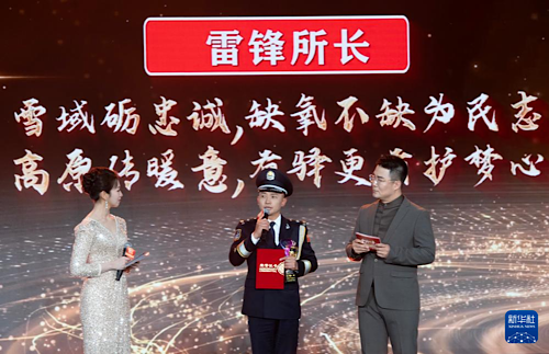 1月28日,由新華社主辦的“中國網(wǎng)事·感動2025”公益盛典暨年度頒獎典禮在北京舉行,活動揭曉“中國網(wǎng)事·感動2025”十大年度網(wǎng)絡人物。這是“雷鋒所長”劉鵬(中)出席頒獎典禮。新華社記者 李安 攝