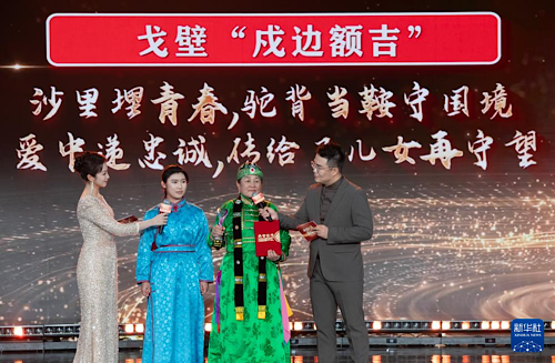 1月28日,由新華社主辦的“中國網(wǎng)事·感動2025”公益盛典暨年度頒獎典禮在北京舉行,活動揭曉“中國網(wǎng)事·感動2025”十大年度網(wǎng)絡人物。這是“戈壁‘戍邊額吉’”敖云其木格(右二)出席頒獎典禮。新華社記者 李安 攝