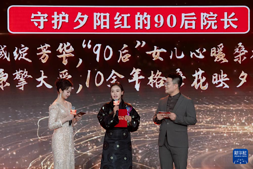 1月28日,由新華社主辦的“中國網(wǎng)事·感動2025”公益盛典暨年度頒獎典禮在北京舉行,活動揭曉“中國網(wǎng)事·感動2025”十大年度網(wǎng)絡人物。這是“守護夕陽紅的90后院長”格西王姆(中)出席頒獎典禮。新華社記者 李安 攝