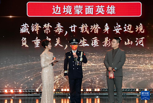1月28日,由新華社主辦的“中國網(wǎng)事·感動2025”公益盛典暨年度頒獎典禮在北京舉行,活動揭曉“中國網(wǎng)事·感動2025”十大年度網(wǎng)絡人物。這是“邊境蒙面英雄”安曉華(中)出席頒獎典禮。新華社記者 李安 攝
