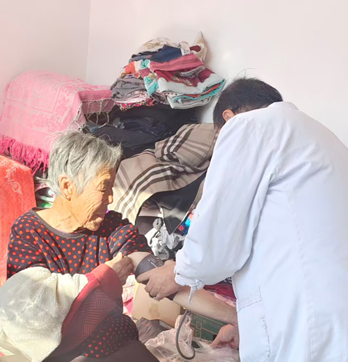 每到一戶,志愿者小隊都用細致行動傳遞溫暖:志愿者們主動幫老人整理床鋪、擦拭桌椅,為行動不便的老人梳頭發(fā)、剪指甲,拉著家常傾聽老人煩惱,細致記錄“需紙尿褲”“換輕便拐杖”等“微心愿”訴求,承諾后續(xù)全力落實。當?shù)蒯t(yī)護人員現(xiàn)場為老人開展全方位健康評估,測量血壓、聽診心肺,查看長期臥床老人皮膚狀況,用通俗語言講解慢病管理、褥瘡預防知識,親手示范翻身、拍背等正確手法,手把手指導家屬操作,同時標注轉診綠色通道信息,用專業(yè)筑牢老人健康防線。營養(yǎng)師歐曉婷則詳細講解特醫(yī)食品知識,指導家屬科學喂食,傳遞“科學關愛”。