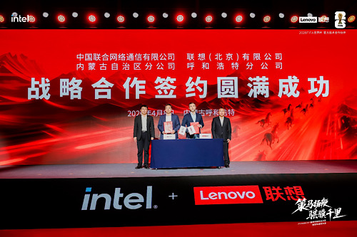 當日大會上,除生態(tài)公益外,聯(lián)想與內蒙古的科技合作再結碩果 —— 聯(lián)想(北京)有限公司呼和浩特分公司與中國聯(lián)合網(wǎng)絡通信有限公司內蒙古分公司正式簽署2026—2029 年戰(zhàn)略合作協(xié)議。內蒙古聯(lián)通黨委書記、總經(jīng)理韓敏出席并見證簽約,期待與聯(lián)想攜手共拓數(shù)智合作新局。雙方將立足資源共享、優(yōu)勢互補,在基礎通信、云計算、大數(shù)據(jù)、5G + 行業(yè)應用、網(wǎng)信安全、國產適配、科技創(chuàng)新等九大領域深度協(xié)同,共同推動內蒙古數(shù)字經(jīng)濟高質量發(fā)展。