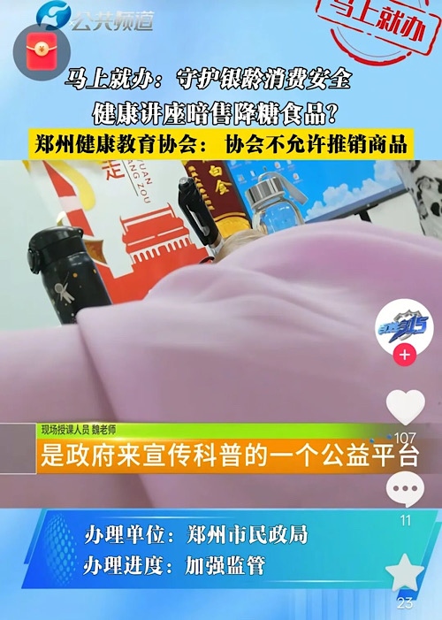 河南鄭州某機(jī)構(gòu)打著“銀齡”旗號在社區(qū)推銷商品