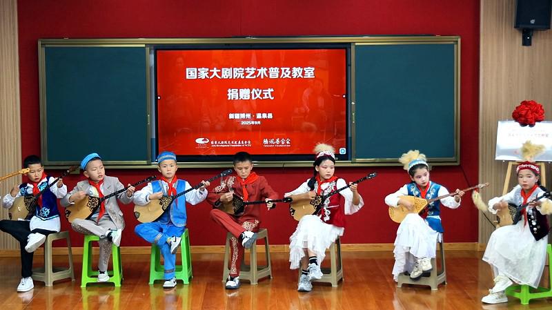 國家大劇院藝術普及教室,采用“線下空間改造+線上資源賦能”的立體幫扶模式,以“小空間”激活“大文化”,既是首都連接邊遠地區(qū)的“美育橋梁”,也是國家大劇院在邊遠地區(qū)的“美育陣地”。 ■ 本報記者 高文興 在祖國邊陲,新疆的西北端,坐落著這樣一個與哈薩克斯坦共和國接壤的小城——博爾塔拉蒙古自治州溫泉縣。這片僅有7萬多人口的靜謐之地,其三面被高聳入云的連綿雪山所包圍,像是被巨人藏入懷抱的一顆稀世之珍,驚艷動人,卻隱秘地不為外界察覺。 9月中旬的晚上,溫泉縣已倍感寒意,至21時,漫長的白日卻才舍得向這里做最后告別。然而,一片雷鳴般的掌聲和歡呼又陡然劃破這天山腳下的寧靜,一場國家級頂尖水準的歌舞盛宴此時拉開帷幕——在新疆維吾爾自治區(qū)成立70周年之際,國家大劇院藝術發(fā)展基金會為溫泉縣帶來的藝術火種,正烘托著這顆邊陲明珠釋放其更加璀璨的光芒。 “藝術普及教室”落地溫泉 助力多民族文化永葆活力 溫泉縣城位于海拔1700米的博格達爾山的山腳下,博格達爾在蒙語中意為“神山的背后”。雖然地處遙遠,但千年來,在這座神山的注視下,漢族、蒙古族、哈薩克族、維吾爾族等多民族共同譜寫出了一曲曲世代傳唱的動人歌謠,當?shù)氐拿晒抛宥陶{更從大山背后傳出,成為了國家級的“非遺”代表性項目。 9月17日,國家大劇院藝術發(fā)展基金會攜國家大劇院歌唱家遠赴溫泉縣,與溫泉縣烏蘭牧騎展開交流,為草原輕騎兵捐贈樂器,并與他們聯(lián)手為當?shù)匕傩辗瞰I了兩臺高水準的演出,將最優(yōu)質的文化資源送抵祖國的邊境線。 于是,便有了文章開頭的一幕——千余名當?shù)匕傩赵谝归g涌進溫泉縣文化中心劇場,他們的熱情激發(fā)出了演員們的高水準表演,將晚會推向一個又一個高潮。 巴音巴特已經(jīng)是溫泉縣烏蘭牧騎第五任隊長,當天,他全程參與了和大劇院歌唱家的交流以及同臺演出,他在演出后接受《公益時報》記者采訪時表示,在過去,烏蘭牧騎的創(chuàng)作和演出條件艱苦,經(jīng)?!耙蕴鞛槟徊?,以地為舞臺”,這次國家大劇院帶來的樂器有鋼琴、二胡、三弦等,“豐富了我們的樂器品種,讓演員的創(chuàng)作、表演和舞蹈編曲更上一個臺階。國家大劇院藝術家與基層藝術團隊的深入交流,也讓我們受益匪淺,他們千里迢迢的到來讓我們深切感受到了來自祖國的溫暖。” 溫泉縣烏蘭牧騎生生不息的傳承基因,必然與當?shù)孛耖g世代熏陶和培養(yǎng)密不可分,而小學基礎教育則是將藝術種子進行集中播撒的關鍵階段。鑒于此,國家大劇院團隊本次新疆溫泉之行的“重頭戲”,則是為溫泉縣城鎮(zhèn)小學精心打造一間“藝術普及教室”。 據(jù)了解,溫泉縣城鎮(zhèn)小學是當?shù)匾蛔兄凭脷v史和美育教育傳統(tǒng)的學校,目前在校學生1052名,其中90%為少數(shù)民族。校長王麗娜表示,學校配備了6間音樂教室和4名音樂教師,基本滿足教學需求,但面對孩子們更高的藝術渴求,在樂器等基礎設備上還難以滿足。 而新落成的“藝術普及教室”中,教學一體機、音響、鋼琴、合唱臺等先進硬件設施一應俱全,師生們還可以通過線上課堂來獲取更多的教材和音視頻。9月18日上午,在“藝術普及教室”捐贈儀式過后,城鎮(zhèn)小學的學生們表演了蒙古舞蹈《吉祥的筷子》、蒙古短調《察哈爾八旗》、維吾爾族舞蹈《快樂的童年》、冬不拉合奏《我的伙伴》、鋼琴演奏《噴泉》等精彩節(jié)目,展現(xiàn)了多民族文化的交融與活力。 此次隨隊前來的國家大劇院藝術家金鄭建、胡越,在驚嘆于小小年紀的孩子們有如此藝術天賦之余,分別為學校的社團學生指導演唱《祖國在我心窩里》《盧溝謠》,并為他們上了一場生動的“藝術第一課”。 看到孩子們在藝術家的啟發(fā)下被激發(fā)出的求知欲和表現(xiàn)力,校長王麗娜感慨地說道:“其實不是我們的孩子不行,而是我們原來缺少這樣高水平的師資。通過初期課程和藝術家的指導,我們的孩子進步很快,對發(fā)聲技巧、節(jié)奏把控和個人展示都有很大的提升。我們非常感謝,希望有更多這樣高水平的專家來到我們這個邊陲小城,為更多渴望通往藝術殿堂的孩子提供指導?!?br> 國家大劇院創(chuàng)公益新舉 立體扶持鄉(xiāng)村美育陣地 而此次掛牌落成的“藝術普及教室”已是國家大劇院藝術發(fā)展基金會在全國打造的第五間教室。 據(jù)了解,國家大劇院藝術發(fā)展基金會成立于2022年年底,基金會以“資助文化藝術公益項目”為主,圍繞國家大劇院“人民性、藝術性、國際性”三項宗旨,構建了全民美育、藝術資助和藝術交流三大項目體系。 “藝術普及教室”是2024年基金會創(chuàng)新開展的公益項目之一。當年11月,基金會首站深入大興安嶺腹地的內蒙古鄂倫春自治旗,為這一鄂倫春族的主要聚居地打造了兩間“藝術普及教室”,也為當?shù)氐臑跆m牧騎捐贈了樂器。在此之外,基金會連續(xù)四天在當?shù)嘏e辦藝術講座、歌劇電影放映等8場鄉(xiāng)村文化振興公益活動,惠及鄂倫春自治旗中小學、社區(qū)和藝術團體。 今年8月,基金會又前往貴州省臺江縣,向苗族人口占比高達98%的這一地區(qū)捐建兩間“藝術普及教室”,為當?shù)貎伤袑W的藝術教育翻開嶄新篇章。 可以看到,加上此次新疆溫泉縣教室的揭牌,已有五間“藝術普