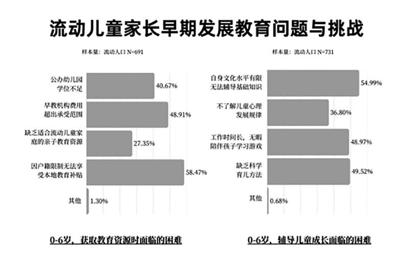 報告認(rèn)為,困境流動兒童家庭的境遇,并非個體悲劇或單一因素所致,而是宏觀制度結(jié)構(gòu)、中觀支持網(wǎng)絡(luò)與微觀生命事件在時間維度上動態(tài)交織、代際傳遞的系統(tǒng)性結(jié)果。 ■ 本報記者 王勇 流動兒童的自我身份認(rèn)同相對混亂和模糊。29.83%的流動兒童認(rèn)為自己“既是城市人又是農(nóng)村人”。24.33%認(rèn)為是“農(nóng)村人”,24.07%認(rèn)為是“流動人口”,13.57%認(rèn)為是“城市人”,8.19%表示“不清楚”。與此同時,77.06%的流動兒童家長、63.41%的流動兒童希望長期在城市發(fā)展。 上述數(shù)據(jù)來自《看見流動的童年——流動兒童及其家庭需求研究報告(2025)》(以下簡稱報告)。該報告由北京市協(xié)作者社會工作發(fā)展中心(以下簡稱“協(xié)作者”)在1月25日舉行的流動兒童及其家庭關(guān)愛服務(wù)創(chuàng)新沙龍上正式發(fā)布。 基于2025年對京津冀、長三角、珠三角及山東半島四個代表性城市776個流動兒童家庭與787個流動兒童的問卷調(diào)查,以及54個困境家庭的深度訪談,報告采用“兒童-家庭”雙重視角、“困境-普通”家庭對比視角,全面呈現(xiàn)了該群體在生計發(fā)展、身心健康、教育公平及社會支持四大核心維度的生存現(xiàn)狀與動態(tài)需求。“我們希望這份報告及相關(guān)持續(xù)性的研究、服務(wù)行動,能為各方提供一個基于實證的、動態(tài)的觀察窗口,共同推動流動兒童關(guān)愛服務(wù)體系朝著更加精準(zhǔn)、系統(tǒng)、可持續(xù)的方向發(fā)展?!眳f(xié)作者主任李濤強調(diào)。 普遍面臨系統(tǒng)性壓力 報告顯示,流動兒童家庭普遍面臨生存與發(fā)展的系統(tǒng)性壓力,而困境家庭在各維度都承受著更為嚴(yán)峻的挑戰(zhàn)。 生計發(fā)展方面,流動兒童家庭面臨就業(yè)質(zhì)量低、收入不穩(wěn)定、經(jīng)濟緩沖能力弱及社會保障不足等多重挑戰(zhàn)。 流動兒童家長從事的職業(yè)以制造業(yè)普工、商販、打零工、保潔家政和服務(wù)員等勞動強度大、技術(shù)門檻低的崗位為主。17.53%的流動兒童家長屬于新業(yè)態(tài)勞動者,其工作是通過網(wǎng)絡(luò)平臺接單,如騎手、快遞員、賣菜平臺分揀員等。 流動兒童家長對工作滿意度一般。在滿意度的成因上,“可以兼顧照顧家庭”是最重要的因素,其次是“有社會保險”和“工作時間自由”。 值得一提的是,無論是男性流動兒童家長還是女性流動兒童家長,均將“可以兼顧家庭”作為工作滿意度的最主要的原因之一。這意味著對于流動兒童家長而言,家庭對其自我價值與成就感均是非常重要的考慮因素。 32.35%的家庭面臨收支失衡,支出超過收入,需通過調(diào)整開支或借助外部支持/借貸彌補缺口。49.23%的家庭在無收入時生活難以維持超過2個月,其中困境家庭在此項上的脆弱性更高。 與此同時,近九成家庭在現(xiàn)居城市有過搬家經(jīng)歷,超過半數(shù)曾搬家三次以上。43.03%的流動兒童因搬家“失去原來的好朋友,感到孤單”;27.64%則面臨“在新環(huán)境中交朋友困難”。 身心健康方面,流動兒童在成長發(fā)育的多個環(huán)節(jié)面臨系統(tǒng)性支持不足,而困境兒童面臨的挑戰(zhàn)更為嚴(yán)峻。流動兒童在營養(yǎng)攝入、飲食規(guī)律、健康問題及心理健康等方面存在不同程度的不足與風(fēng)險。 流動兒童家長的健康狀況也不容忽視。39.69%的家長從未做過體檢,未接受體檢的主要原因包括經(jīng)濟壓力大、認(rèn)為身體無大礙無需檢查以及缺乏時間。 60.82%的流動兒童家長經(jīng)確診患有疾病,“三高”(高血壓、高血脂、高膽固醇)、消化道疾病及慢性肌肉骨骼疾病是主要患病類型。這些疾病直接與多數(shù)流動兒童家長從事的高強度體力勞動、不規(guī)律的作息時間、高鹽高脂飲食以及長期久坐或重復(fù)性勞作的工作性質(zhì)密切相關(guān)。 當(dāng)身體不適時,63.89%的流動兒童家長首選自行處理,包括“根據(jù)過往經(jīng)驗到藥店買藥”“先硬扛著”或“自己先上網(wǎng)查詢”。選擇就醫(yī)機構(gòu)時,“醫(yī)療費用更低”“距離更近”和“可以支持報銷”是三個最主要考量因素。 子女教育方面,流動兒童家庭面臨政策壁壘、信息不暢、家庭支持能力弱等挑戰(zhàn)。 在0-6歲早期發(fā)展階段,近九成家庭在獲取教育資源時面臨困難。主要障礙包括戶籍限制和經(jīng)濟壓力。在家庭養(yǎng)育方面,超過九成的家長面臨挑戰(zhàn),其中超過半數(shù)表示因自身文化水平有限,缺乏相關(guān)養(yǎng)育知識。 約半數(shù)流動兒童認(rèn)為父母“不太可以”或“完全不可以”輔導(dǎo)功課;而家長自評中,明確表示無法輔導(dǎo)的比例更高。 在學(xué)齡期兒童入學(xué)與升學(xué)方面,超過九成的流動兒童家長面臨挑戰(zhàn)。主要困境依然與戶籍相關(guān):70.54%的家長在辦理入學(xué)時需要滿足積分落戶或特定證件材料等附加條件;40.08%的家長因戶籍限制,子女在初高中升學(xué)階段只能選擇返回老家。 與通常想象不同,流動兒童家庭對子女教育的首要期待并非學(xué)業(yè)成績。排名前三的期待分別是:獨立自信完成任務(wù)/目標(biāo)、與他人交往的能力、有自己的興趣愛好,學(xué)習(xí)成績僅排在第四位。“這一發(fā)現(xiàn)打破了城市家庭的