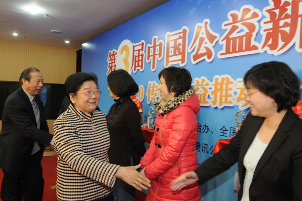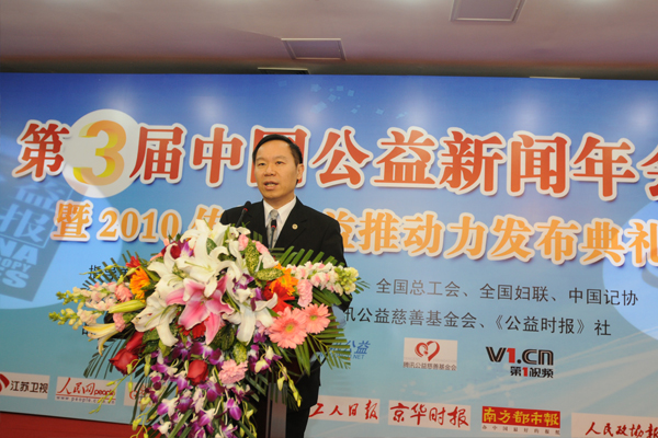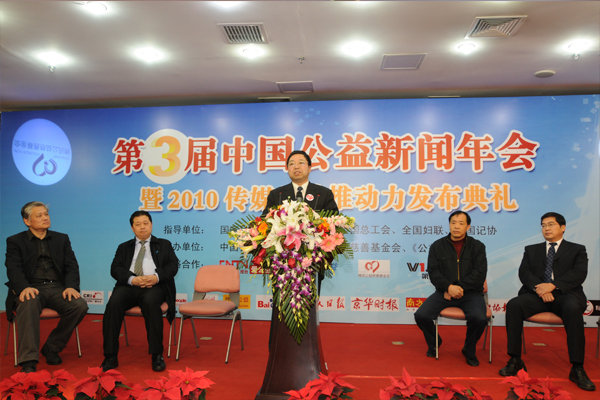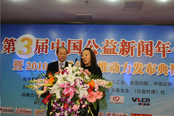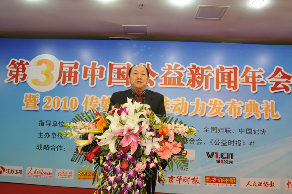 2月25日,第三屆中國(guó)公益新聞年會(huì)暨2010傳媒公益推動(dòng)力發(fā)布典禮在京召開。全國(guó)人大原副委員長(zhǎng)、中國(guó)關(guān)心下一代工作委員會(huì)主任顧秀蓮,民政部原副部長(zhǎng)、中國(guó)社會(huì)工作協(xié)會(huì)會(huì)長(zhǎng)徐瑞新,中華全國(guó)新聞工作者協(xié)會(huì)書記處書記顧勇華等領(lǐng)導(dǎo)出席年會(huì)。